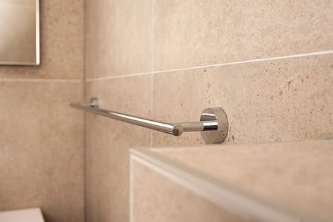 Wanneer we verder inzoomen, zien we dat alle kranen, stangen en douchekoppen gemaakt zijn van chroom. Chroom is eenvoudig schoon te houden en geeft een beetje glans aan elke ruimte.
